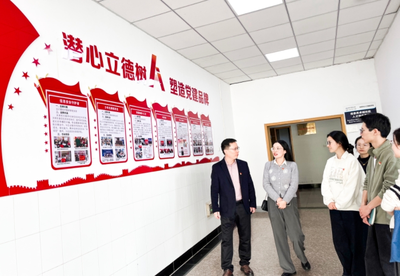 園區(qū)黨員代表在周主任和王院長的陪同下參觀了學(xué)校校史館,深入了解了商貿(mào)學(xué)院的創(chuàng)立背景、發(fā)展歷程、教育教學(xué)成果以及社會影響力等方面的內(nèi)容,校史館充分展現(xiàn)了學(xué)校的辦學(xué)理念、悠久的歷史積淀和豐富的文化底蘊(yùn)。隨后參觀了信息與人工智能學(xué)院教學(xué)樓和教學(xué)設(shè)施,了解了學(xué)院的榮譽(yù)歷程、師資團(tuán)隊以及黨支部多種多樣的黨建活動。