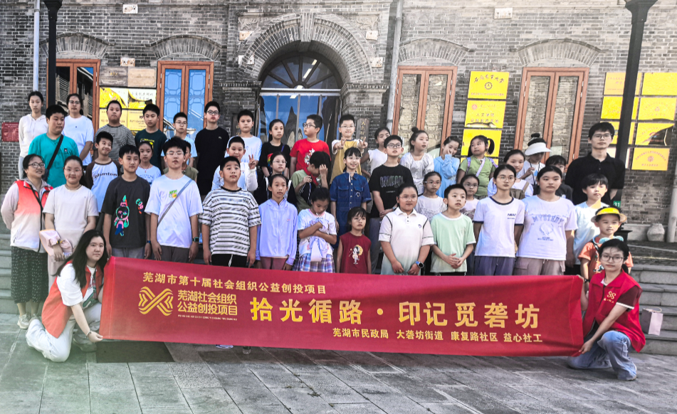 為引導(dǎo)兒童了解本土地名文化底蘊,感受城市工業(yè)發(fā)展脈絡(luò),8 月 14 日,蕪湖市益心社會工作發(fā)展中心帶領(lǐng)40名兒童走進園區(qū),以 “拾光循路?印記覓礱坊” 為主題開展沉浸式科普活動,通過實地探訪、互動體驗與趣味講解,帶領(lǐng)孩子們追溯 “礱坊” 地名淵源,增強本土文化認同感。